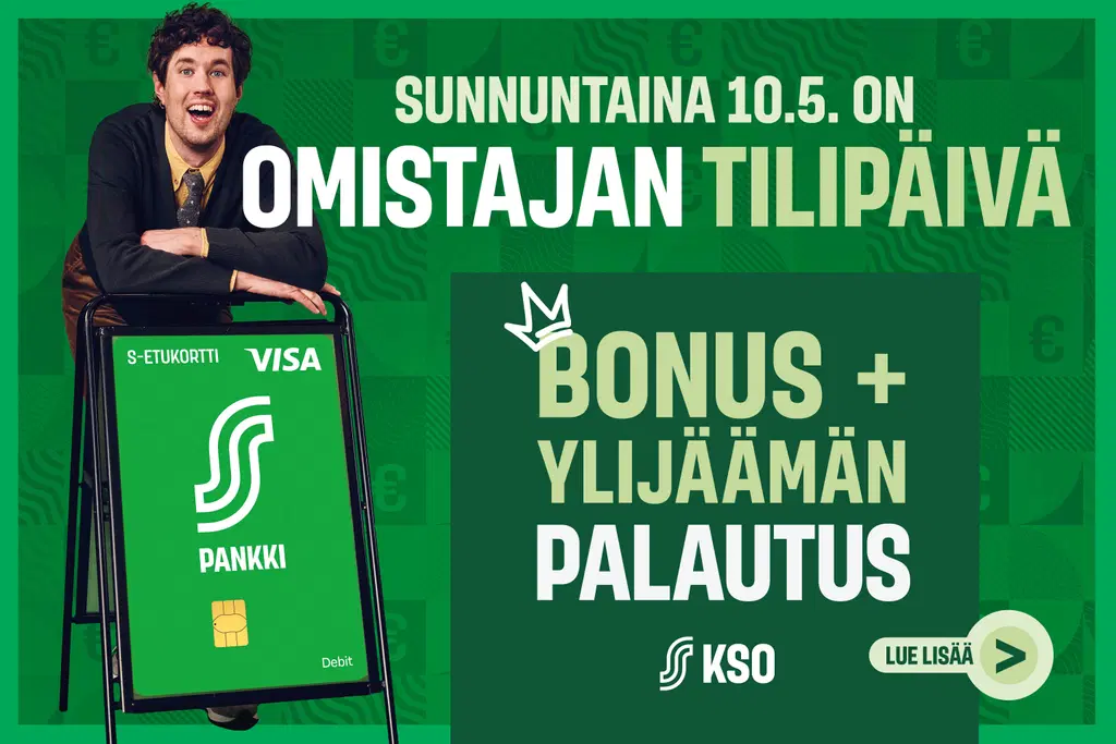 Ja sitä saat S-Etukortilla. Liity KSO:n asiakasomistajaksi ja saat oman S-Etukortin sekä rahanarvoiset liittymisedut! Bonus maksetaan asiakasomistajan pankkitilille Tilipäivänä eli joka kuun 10. päivä.