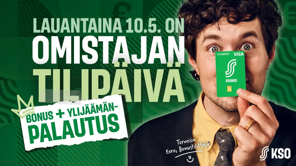 Kymen Seudun Osuuskaupan edustajisto päätti varsinaisessa kevätkokouksessaan 15.4.2025 jakaa asiakasomistajilleen ylijäämänpalautusta vuodelta 2024. Ylijäämänpalautus ja huhtikuun Bonus maksetaan asiakasomistajien tileille S-Pankkiin Omistajan tilipäivänä 10.5.2025. Yhteensä asiakasomistajille palautuu yli 10 miljoonaa euroa.Ylijäämänpalautus perustuu Bonusta kerryttäneisiin ostoihin, jotka osuuskaupan jäsen on tehnyt oman osuuskauppansa toimipaikoista. Tänä vuonna asiakasomistajamme saavat 2,5 % prosenttia rahaa takaisin KSO:n toimipaikoista vuonna 2024 tekemistään ostoista.KSO:n asiakasomistajien tileille S-Pankkiin maksetaan 10.5.2025 ylijäämänpalautuksena yhteensä 9,4 miljoonaa euroa. Kun ylijäämänpalautukseen lisätään huhtikuun 2025 Bonus, kohoaa summa yli 10 miljoonaan euroon.Ylijäämänpalautuksella osuustoiminnallinen yritys jakaa omistajilleen edellisvuoden liiketoiminnan tulosta.
