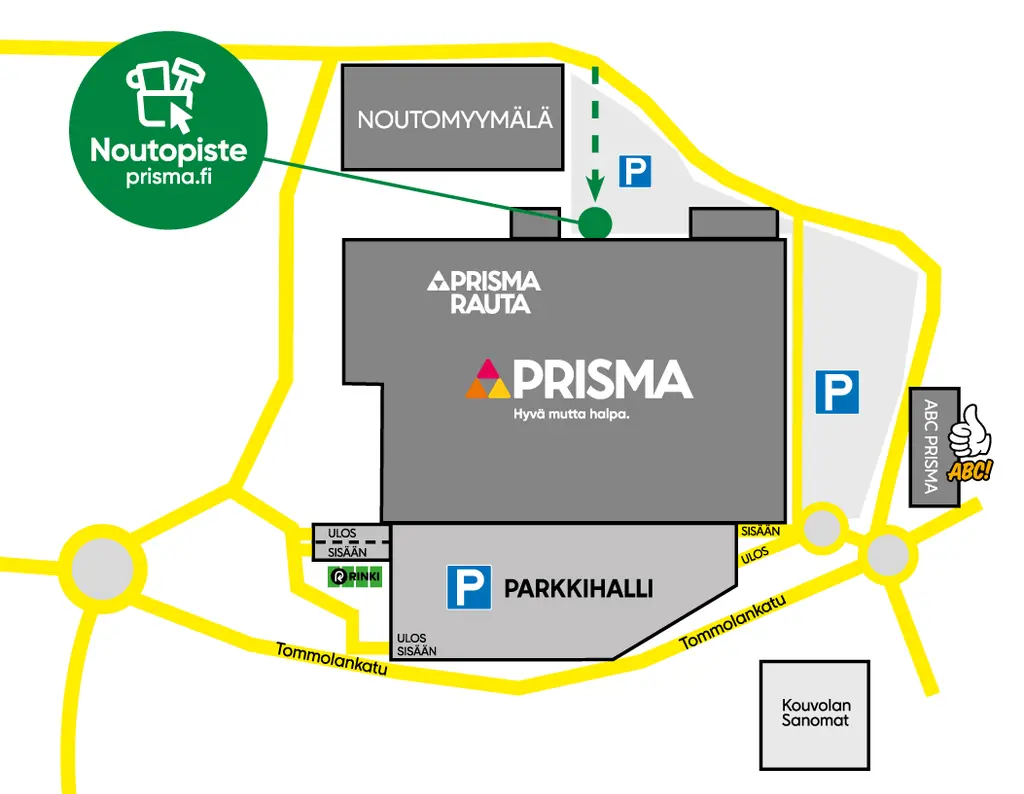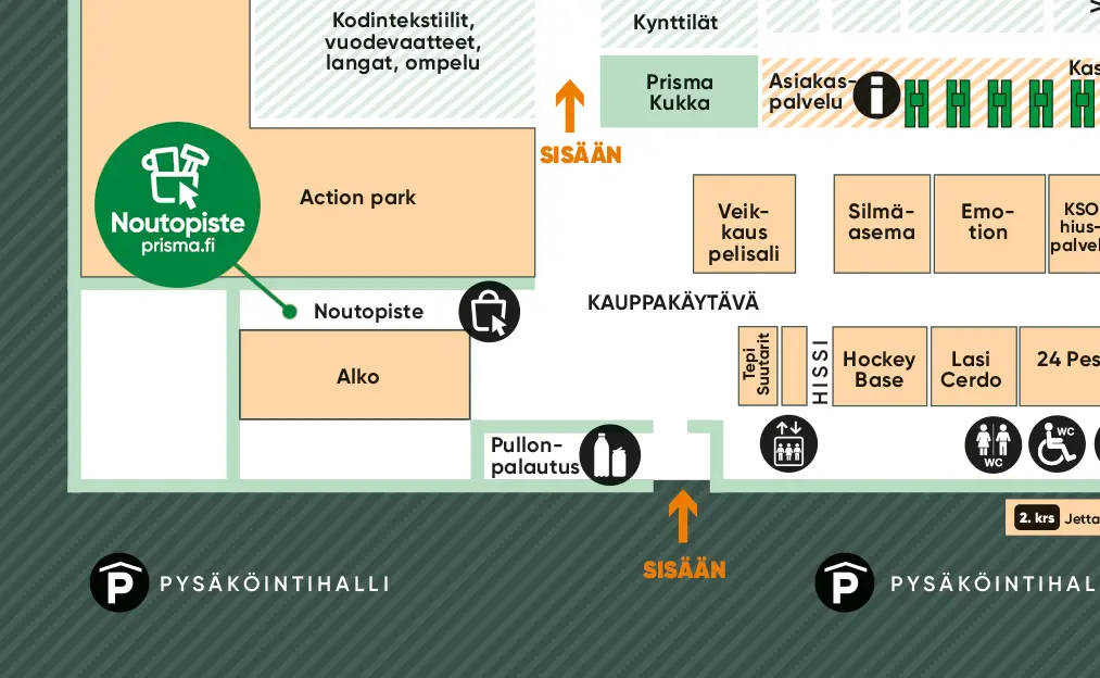 Myymälänoudon tilaukset haetaan noutolokerikosta. Suurikokoiset tuotteet noudetaan myymälän takaa Noutovarastosta. Tarkista aina tarkat nouto-ohjeet saamastasi noutoviestistä. Noutopalvelu on auki ma–la klo 7–21 ja su klo 9–21. Huomioithan, että noutopalvelun ja myymälän aukioloajat saattavat erota toisistaan.